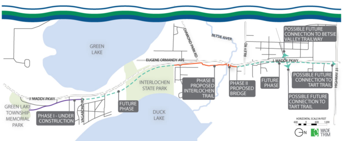 The Interlochen Community Art Trail is a 3.5-mile path designed to connect parks, schools, neighborhoods, and local businesses while celebrating art and outdoor activity. On this page, you can explore the planned trail route, view maps, and download important information to learn more about this exciting upcoming project.
